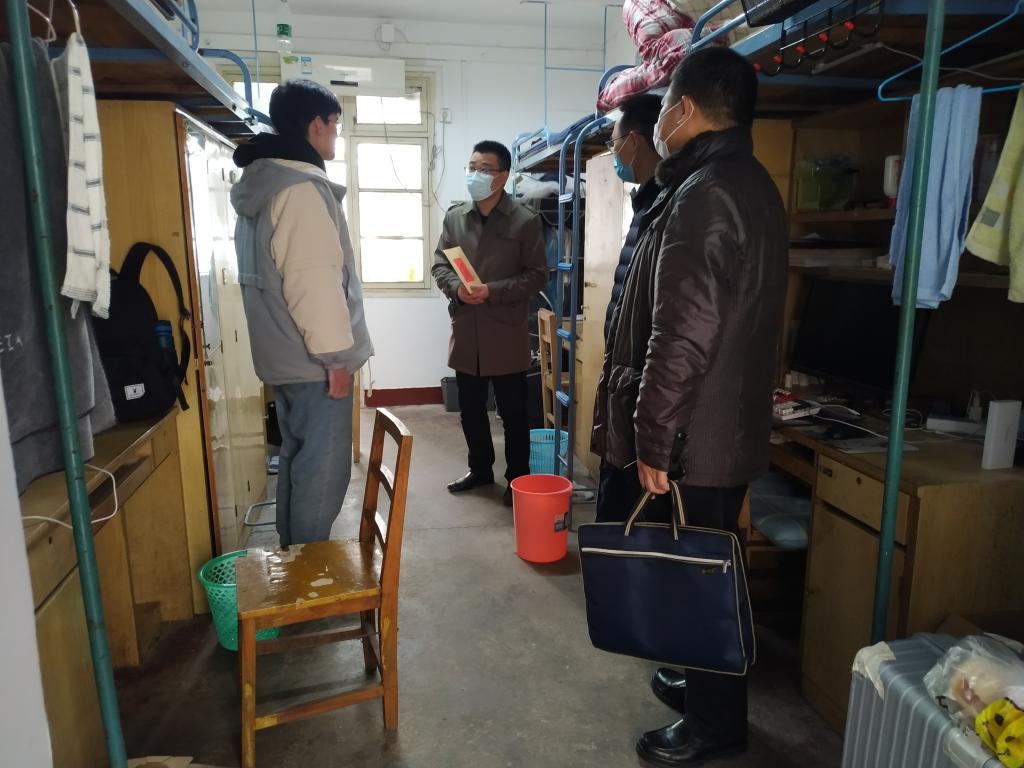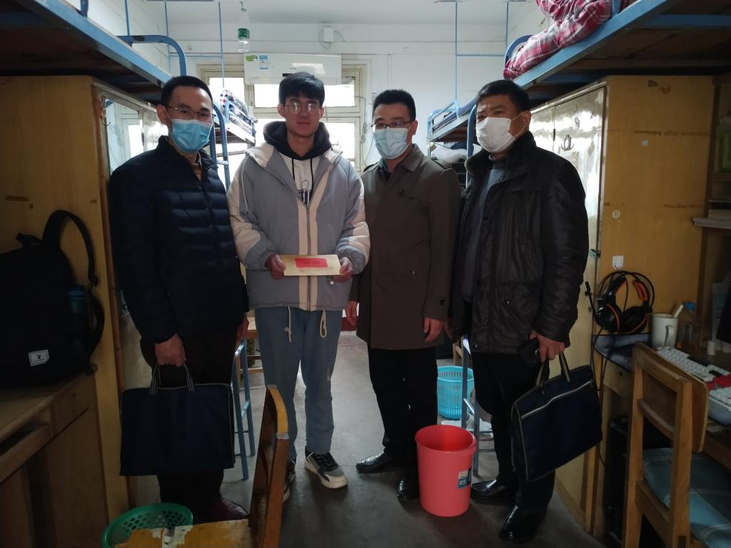1月15日,学校党委学生工作部部长邬海峰、组织部副部长冷再心在自动化学院党委副书记何建新陪同下,代表省委教育工委、学校党委走访慰问自动化学院学生党员蔡磊同学,向蔡磊同学送去了组织的关怀和温暖。