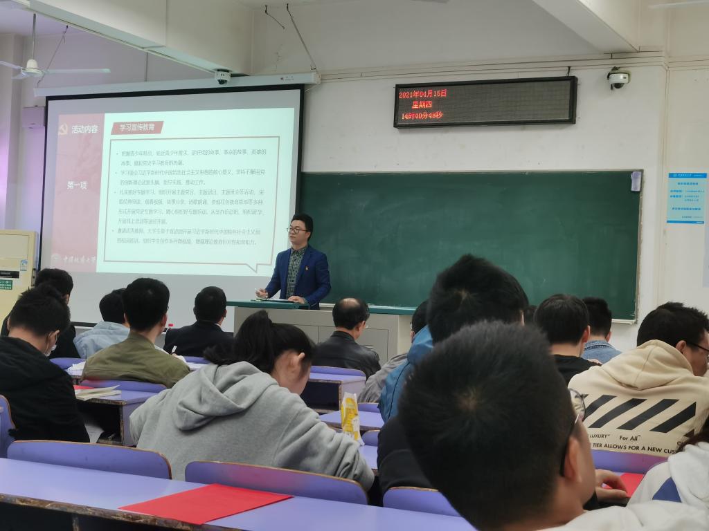 首先,辅导员黄兰华老师从活动内容、时间安排以及工作要求三个方面,对之前发布的《自动化学院庆祝建党100周年和党史学习教育学生活动实施方案》进行了详细解读。一要开展好学习宣传教育活动,坚持不懈用党的创新理论武装头脑、指导实践、推动工作。二是开展好社会实践类活动,引导青年学生传承红色基因,践行初心使命,切实为身边师生办实事、解难题。三是开展好以评促建活动,做好优秀典型选树工作,营造浓厚创先争优氛围,发挥榜样引领带动作用。