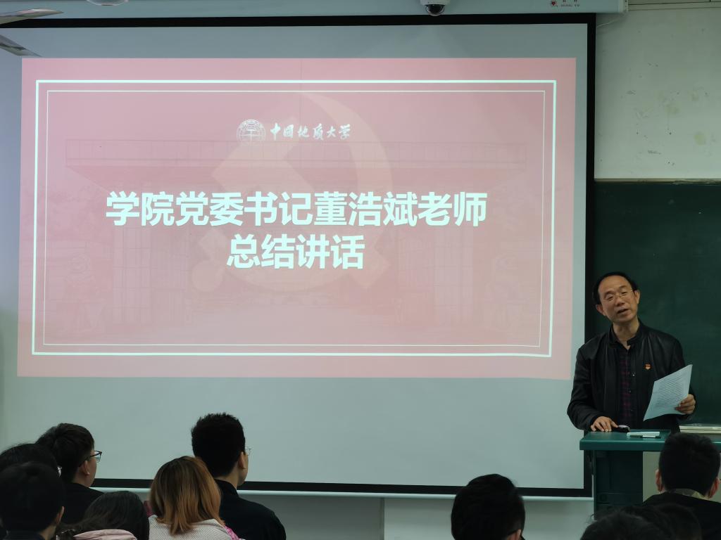 最后,学院党委书记董浩斌老师总结讲话。他强调,开展党史学习教育是党中央立足党的百年历史新起点,动员全党全国满怀信心投身全面建设社会主义现代化国家而作出的重大决策。同时,他谈了党史学习与专业学习的密切关系。他希望同学们要树立远大理想,热爱伟大祖国、担当时代责任、勇于砥砺奋斗、练就过硬本领、锤炼品德修为,为实现中华民族伟大复兴的中国梦而不懈奋斗。他预祝庆祝建党一百周年系列活动取得圆满成果,同学们学有收获。