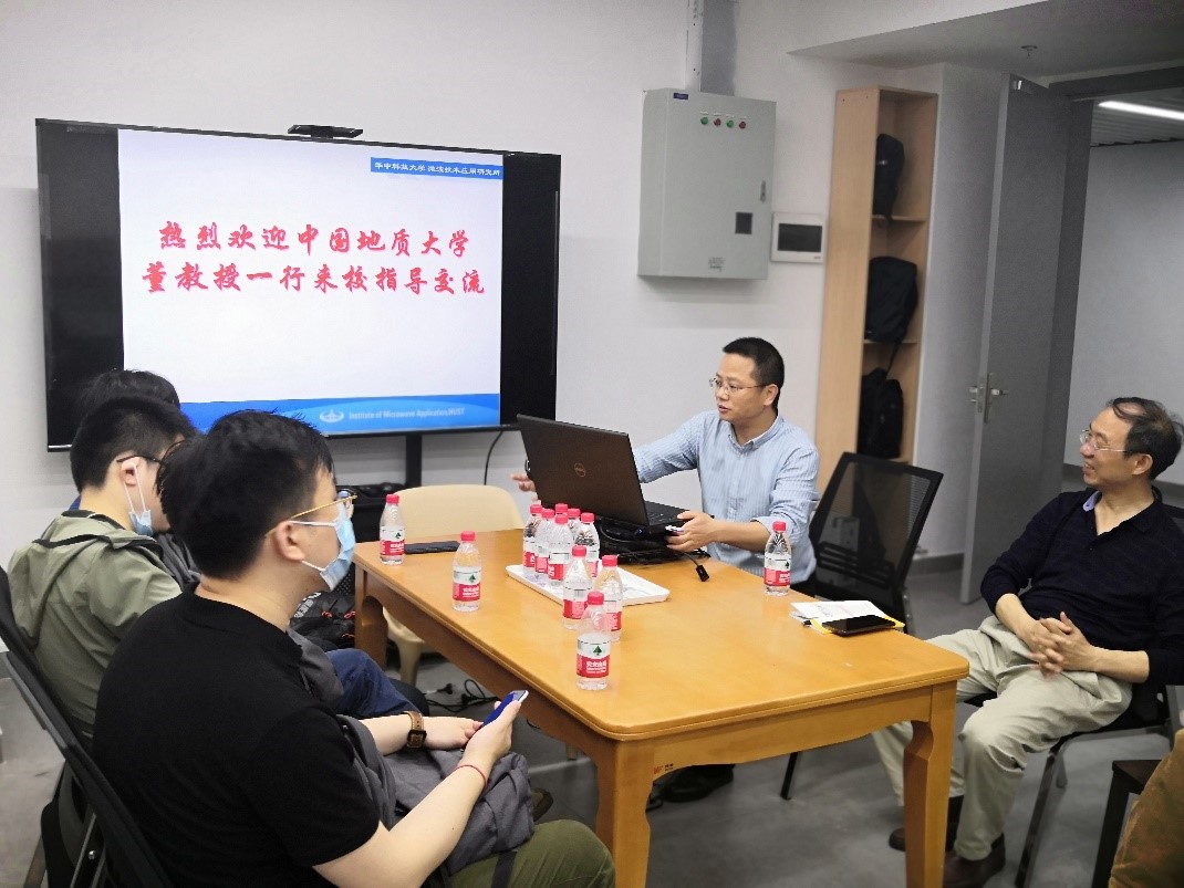 2021年5月14日,贝博官网党委书记董浩斌教授带领“智能地球物理探测仪器与信息处理”团队葛健、刘欢、宋恒力等老师及学生一行8人,到华中科技大学武汉光电国家研究中心调研交流。武汉光电国家研究中心依托华中科技大学,是科技部首批批准组建的6个国家研究中心之一。该中心团队支部书记、湖北省教学名师姜胜林教授,微波技术应用研究所所长吴国安教授及其科研团队成员,热情地接待了董浩斌一行。