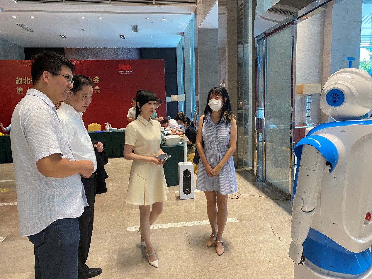 2021年7月22日,在武汉市举办的湖北省烹饪酒店行业协会第七届会员代表大会上,由贝博官网情感计算与情感计算人小组自主研制的情感机器人——WEBO(We Robot)应邀参与本次展览。