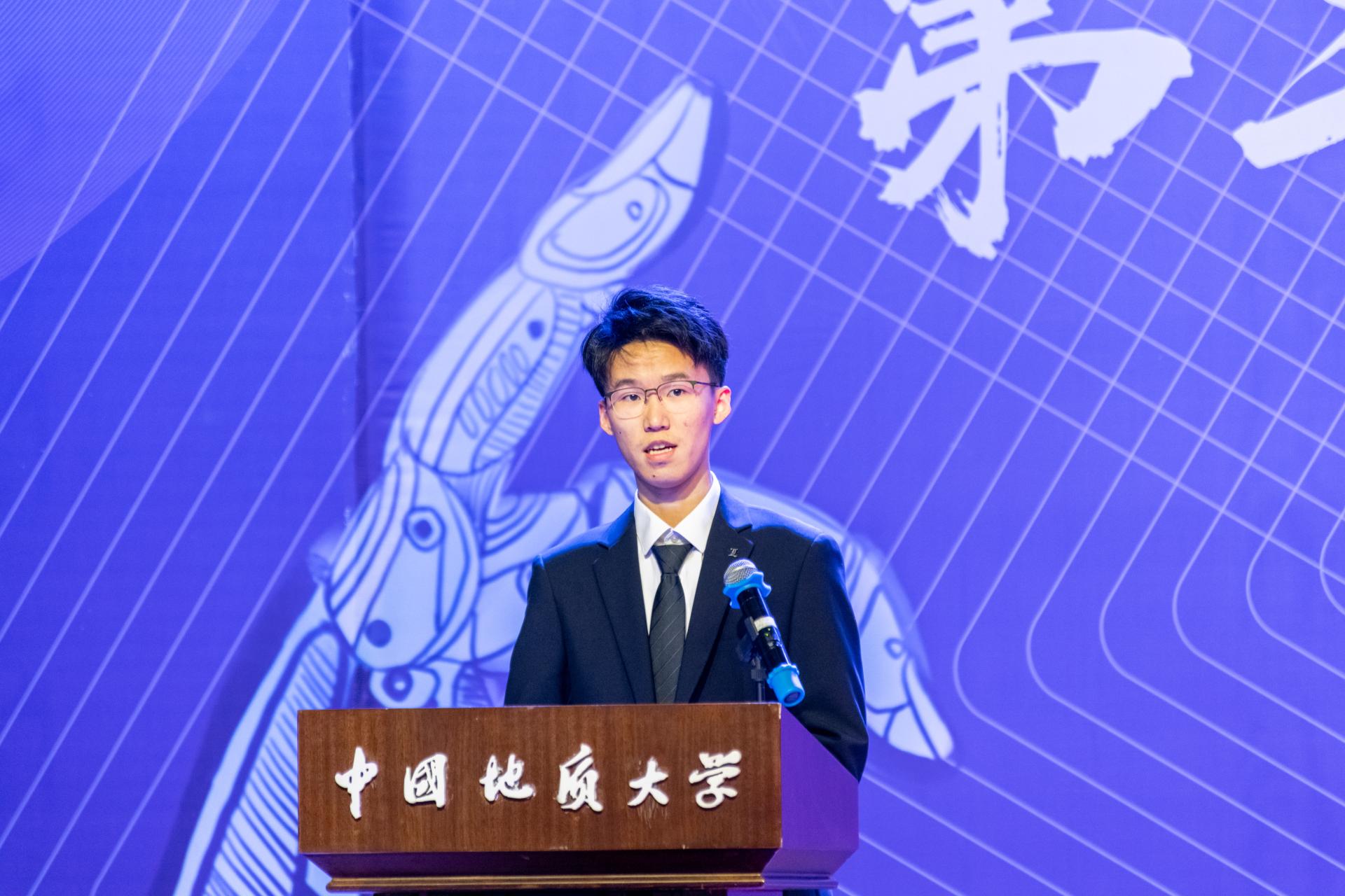 接下来学生代表2019级本科生郑一楠同学发言。他讲述了自己与自动化的初识,并分享了学习中对自动化领域的深入理解,他希望学弟学妹们可以在大一阶段树立自己的目标,并在大学四年为之努力奋斗,将课本理论转化为社会贡献度,成为自动化领域未来发展的领航者。