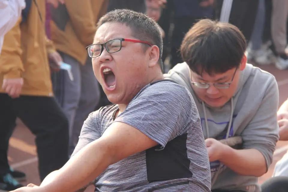 同学们动作整齐划一,卯足了劲,全力以赴!
