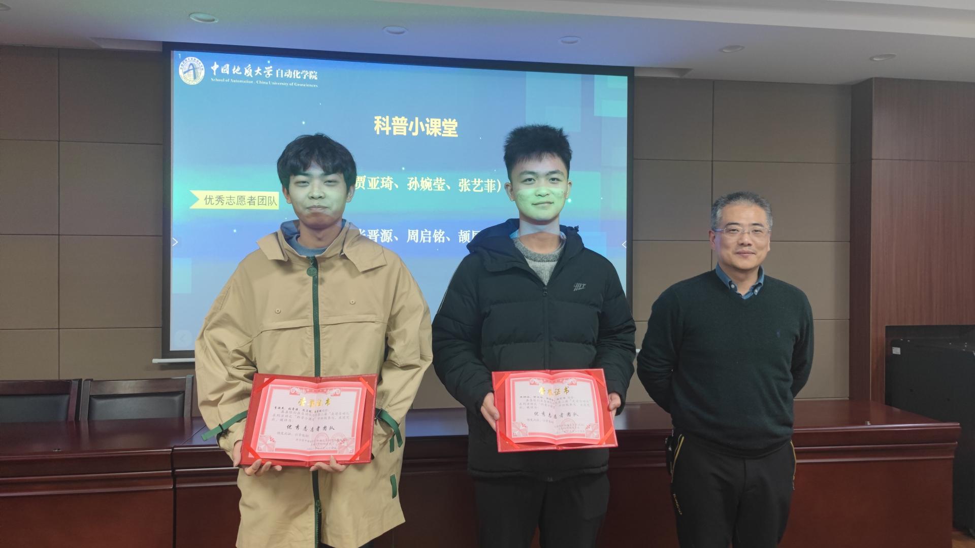 (陈鑫老师为科普小课堂优秀志愿者团队颁奖)