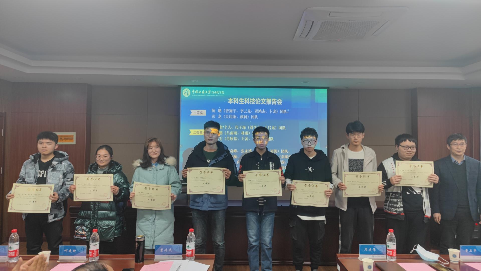(曹卫华老师为本科生科技论文报告会获奖同学颁奖)