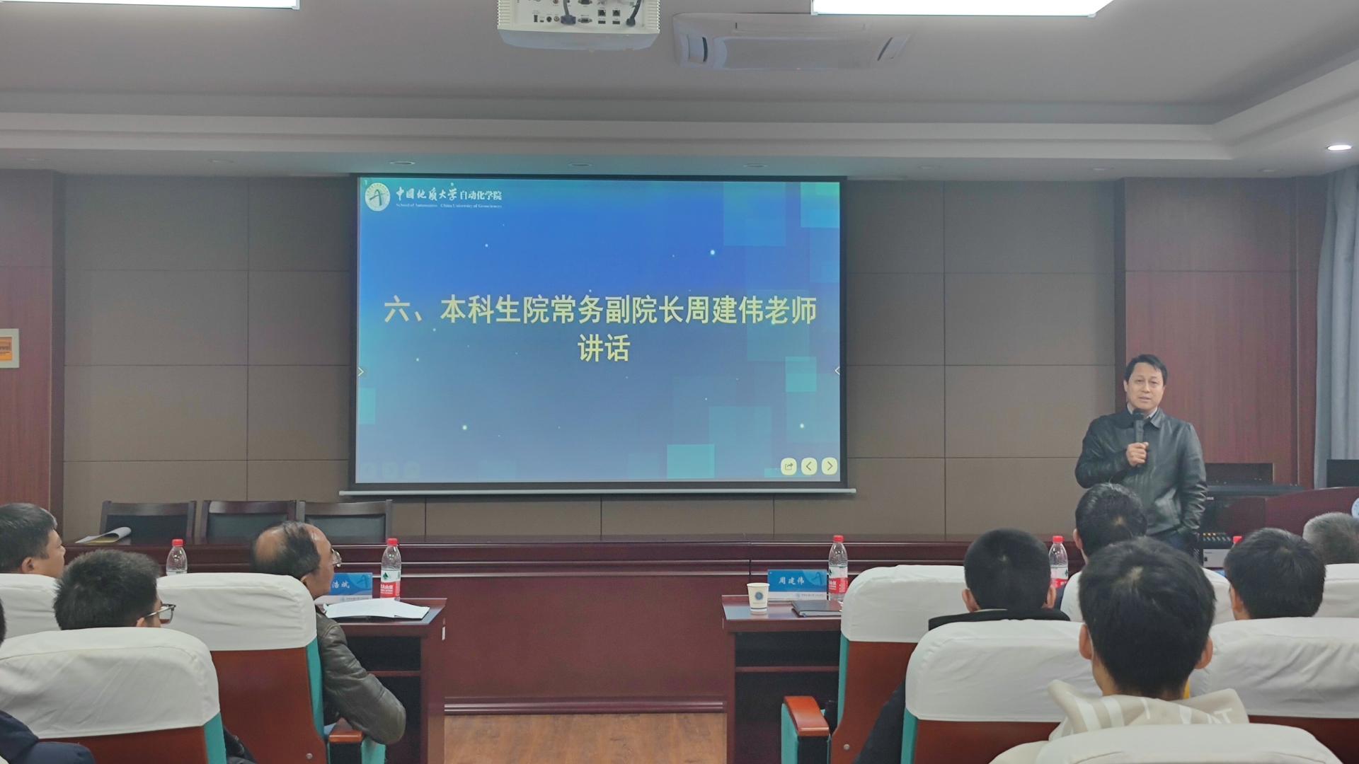 接着,本科生院常务副院长周建伟老师发表讲话。周院长首先对本次获得表彰的同学表示祝贺,并对活动所取得的成绩给予了肯定,同时强调了本科生教育对于一个大学的重要性。他表示通过“走进自动化”系列活动,看到了学院多样化、多方面的人才培养方案,对学院的未来发展充满希冀。