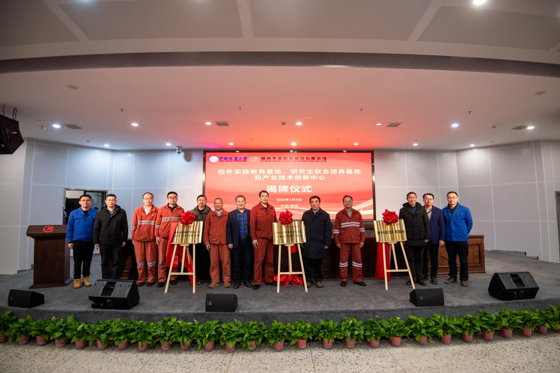 2022年1月5日,贝博官网与湖南华菱涟源钢铁有限公司(以下简称涟钢)共同建设的BB贝博艾弗森官网(武汉)“校外实践教育基地”“研究生联合培养基地”和“产业技术创新中心”三个基地揭牌仪式,在湖南娄底涟钢举行。涟钢副总经理邓必荣,副总工程师、企划部部长黄兆军等负责人,贝博官网副校长赖旭龙,未来技术学院院长吴敏、自动化学院院长曹卫华等负责人,以及正在涟钢生产实习的师生共同参加了揭牌仪式。曹卫华主持揭牌仪式。