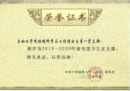 自动化学院控制科学与工程博士生第一党支部(以下简称“博一党支部”)在自动化学院党委的坚强领导下,围绕“创新型和工程应用型的国际化高层次人才”的培养目标,不断强化“三全育人”工作格局,引领支部成员树立科技报国之志,投身国家“新工科”建设,探索了党建和人才培养相结合的“党建+新一代信息技术”融合共生工作机制和“智慧党建”工作新模式,构建了“勇攀五大高峰”的支部建设思路,确保基层支部建设“七个有力”要求落实到位。