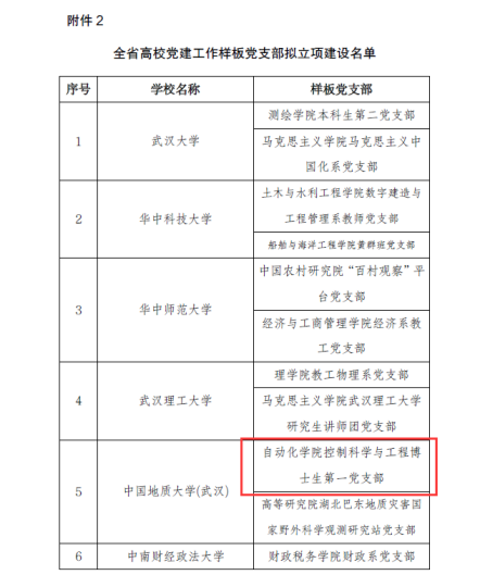 ——自动化学院控制科学与工程博士生第一党支部入选湖北省高校党建工作样板党支部