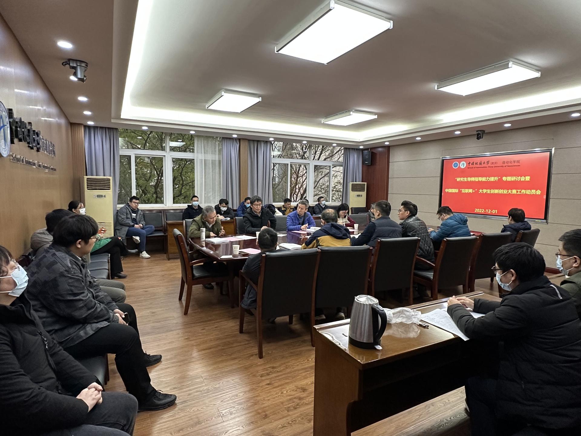 (通讯员:李佳卓)为加快推进新时代研究生教育改革发展,持续落实贯彻学院“创新、国际化、实践”的研究生培养理念,全面推动学院研究生培养方案修订和创新创业工作,提升研究生的培养质量。2022年12月1日下午,自动化学院组织召开了“研究生导师指导能力提升”专题研讨会暨中国国际“互联网+”大学生创新创业大赛工作动员会。会议以“研究生培养方案修订建议与创新创业能力提升路径”为主题,围绕国内外控制学科培养方案调研情况、学院研究生培养方案修订工作情况、研究生创新创业能力提升等方面展开研讨。校研究生院培养处和校创新创业工作办公室相关负责人、学院领导班子、全体研究生导师参加研讨会。会议由副院长陈略峰教授主持。