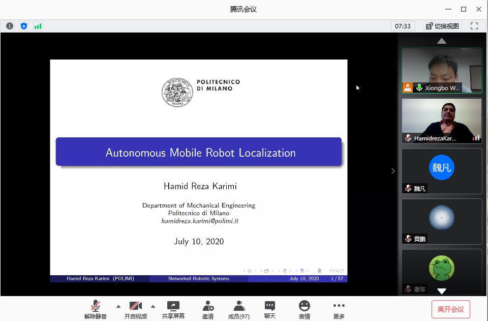 7月10日下午,意大利米兰理工大学 Hamid Reza Karimi 教授应邀为贝博官网师生分别作了题为“Autonomous Mobile Robot Localization”和“Scientific Research Dissemination: Ethics, Publication, Evaluation”的在线学术报告。学院100余名师生参加了此次报告会。